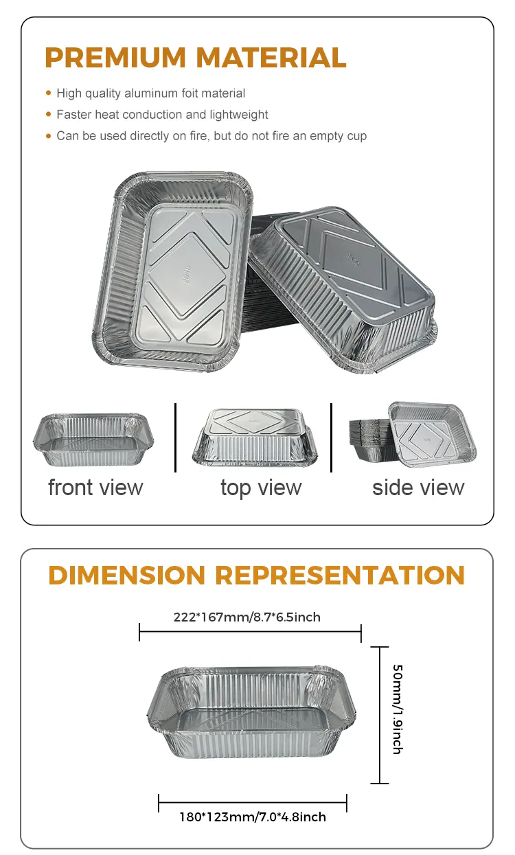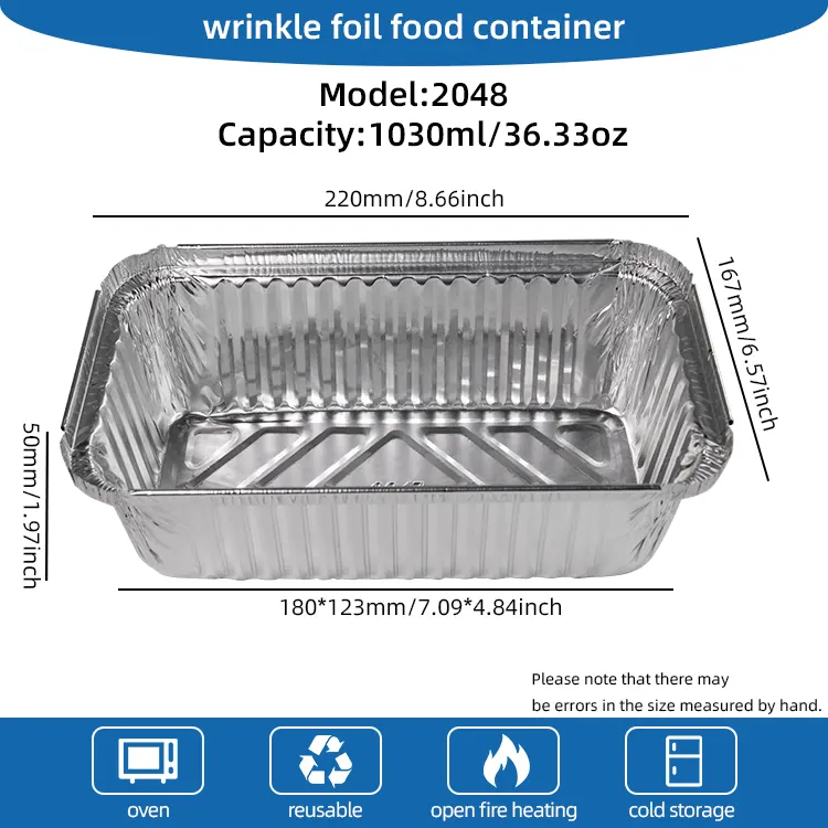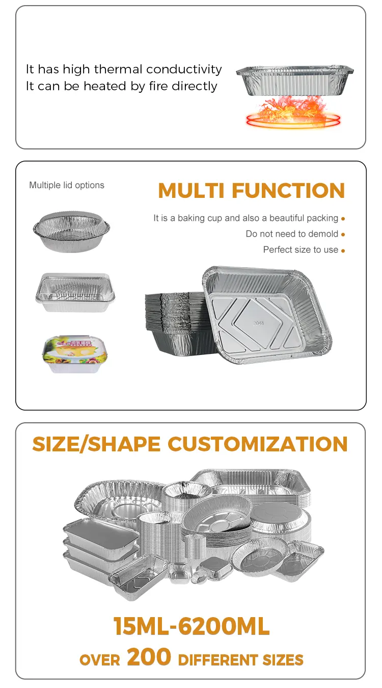 Kothak nedha awan aluminium foil sing bisa digunakake ing Yunchu Aluminium Foil Factory cocok kanggo akeh adegan, apa restoran barbecue, restoran Barat, restoran masak omah, utawa toko roti, kothak nedha awan aluminium foil perak iki bisa nambah efisiensi. Restoran barbekyu bisa langsung digunakake kanggo nyediakake tusuk sate panggang, sayuran panggang, lan panganan laut panggang. Wujud keperakan digandhengake karo bahan sing wangi. Nduwe pengaruh visual sing lengkap lan nyenengake nalika dilayani. Desain sing ora resik nyuda beban kerja cuci piring ing pawon lan ngirit biaya tenaga kerja. Iku utamané cocok kanggo dhaharan cepet sak periode mangan puncak. Bakeries digunakake kanggo nyediakake roti panggang, tart endhog, lan biskuit. Bisa dipanggang langsung ing oven lan ora perlu dipanggang sawise dipanggang. Ngganti piring lan dilebokake langsung kanggo didol kanthi trep nalika njaga suhu lan wujud panganan cuci mulut; restoran ngarep-masak bisa digunakake kanggo takeout, lan desain bocor-bukti bisa èfèktif nyegah sup saka spilling. Pengawetan panas saka aluminium foil bisa ngluwihi wektu suhu pancet pangan. Kanggo kemah, piknik, barbecue ruangan, lan masalah nggawa peralatan makan gedhe lan ngresiki sawise mangan, kothak nedha awan aluminium foil sing bisa digunakake kanthi sampurna ngatasi masalah lelungan ruangan. Bahan kasebut tipis lan entheng, lan gampang disimpen. Bisa lempitan lan ditumpuk ing bakal, njupuk munggah ora spasi ing tas ransel lan nggawe repot-free kanggo nindakake.