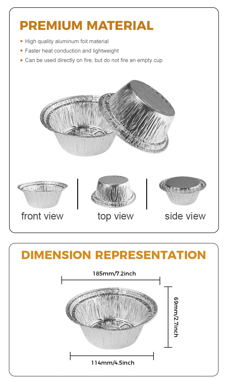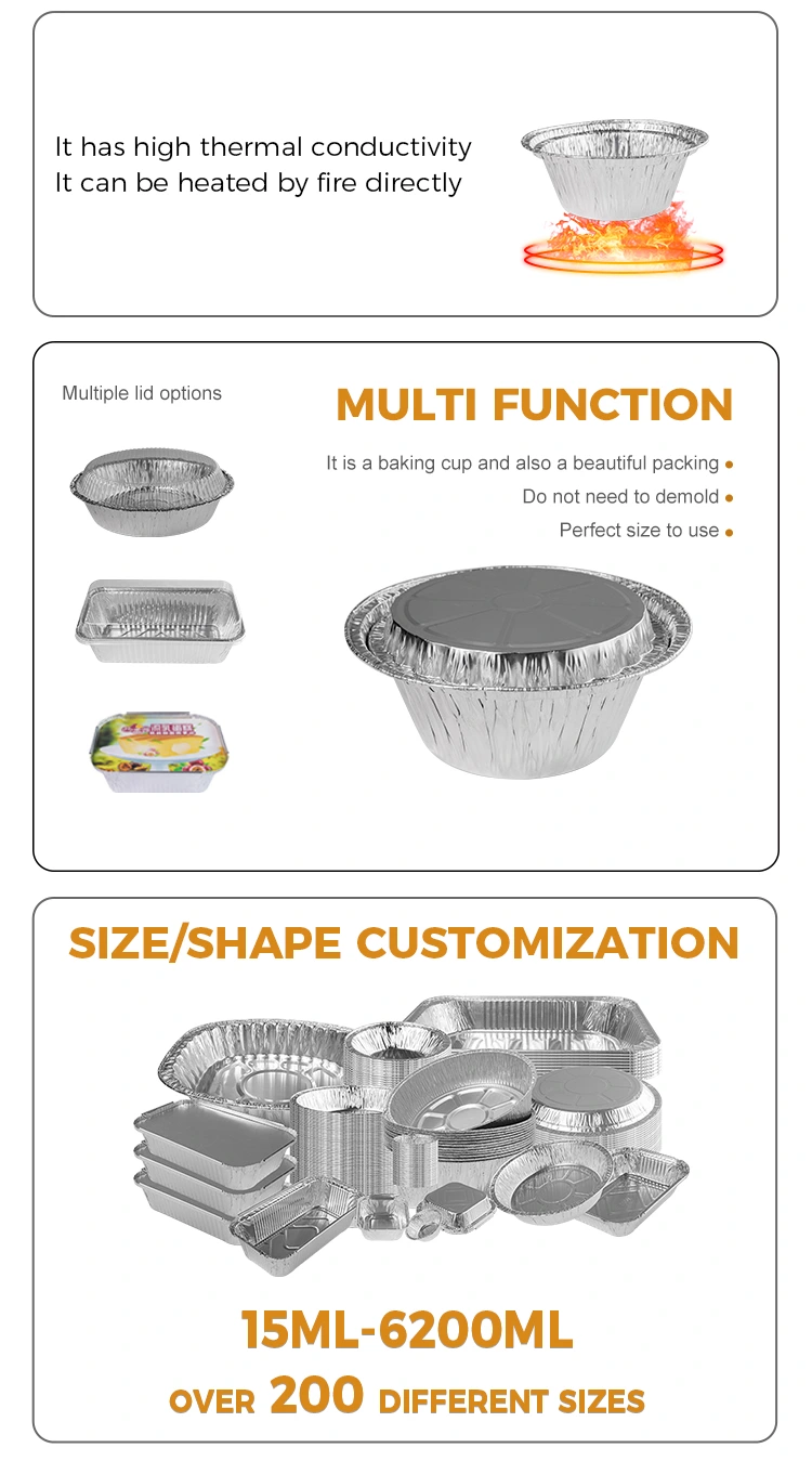 Wadang foil perak kanggo njupuk aluminium Yunuhu nganggo desain, entheng lan gampang digunakake, kanthi nggunakake mung 9,9 gram, kanthi gampang nyimpen, nyimpen ruang lan wektu penempatan. Produk kasebut digawe kanthi proses tembok lampu sing luwih maju kanthi permukaan sing lancar lan rata, nggawe label lan mindhai kerja sawise pangolahan panganan ing pasar gedhe. Kapasitas sing wiyar cukup kanggo nahan macem-macem panganan lan jajanan jajanan, ketemu kabutuhan panggunaan. Minangka produk sing bisa digunakake, ora perlu ngresiki, nyuda biaya tenaga kerja. Kajaba iku, produk kasebut dilengkapi ing tutup tutup ing aluminium lan film panyegel aluminium, sing duwe kinerja minyak lan kinerja banyu sing apik, lan bisa nambah efek kesegaran lan efek pengawal panas, utamane nalika disarat.