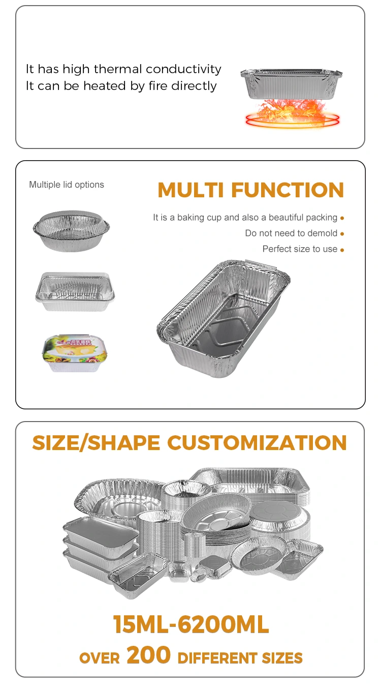 Kontanen Baking Secara Aluminium Foil Yunter Wadah kontan, panggunaan siji-wektu ora kuatir bebas lan ngresiki, lan ora perlu ngresiki nalika digunakake, trep lan higienis. Kothak foil aluminium reged uga duwe nilai daur ulang, ing babagan kontrol kualitas, kita kanthi ketat kanggo langkah-langkah produksi kanggo mesthekake yen kabeh produk ketemu standar safety nasional. Perusahaan iki entuk sertifikat safety bahan bungkus panganan aluminium sing ditokake negara, lan wis sertifikasi Sertifikasi Jerman, sertifikasi EU SGS lan SCSECTIFIKASI ISO9001.