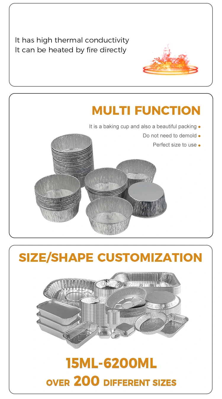 Yunchu Aluminium Foil Supplier kang nganggo perak babak dipping air fryer perak aluminium foil wadhah digawe saka food-bahan thickened aluminium foil. Aman, ora ana ambune, lan ora ana udan sing mbebayani. Bisa langsung hubungi kabeh jinis bahan dipping. Wadah aluminium foil cilik iki bisa ditumpuk kanggo ngirit ruang, ora cacat, lan ora bocor. Aluminium foil perak nduweni tekstur seragam lan konduktivitas termal sing apik. Bisa digunakake ing restoran, kafe, kumpul kulawarga, lan liya-liyane. Digunakake karo cemilan ing penggorengan udara, lsp. Sanajan ana saus sing kandel lan saus saus sing berminyak, ora bakal bocor. Iku tetep meja lan peralatan pawon resik lan rapi. Presentasi foil iku prasaja lan apik ing macem-macem adegan. Penampilan perak bisa dicocogake karo macem-macem piring nedha bengi.