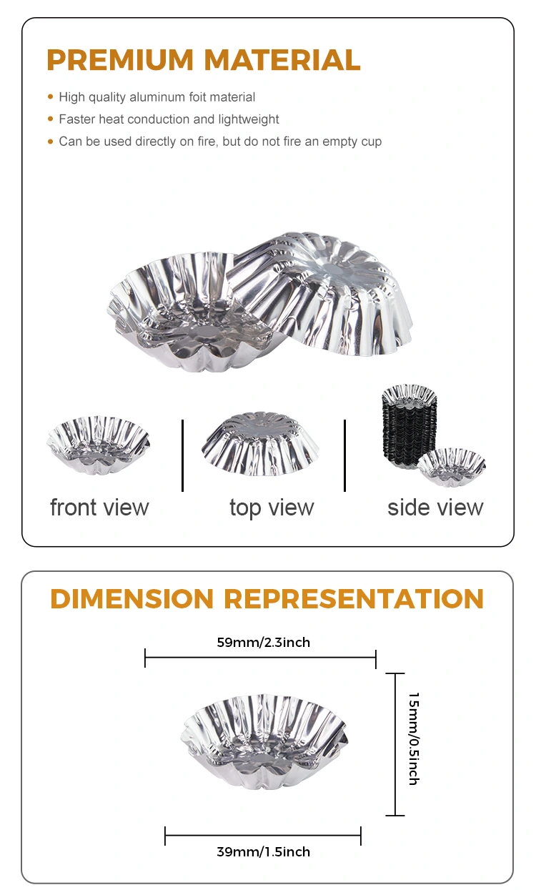• Tarts endhog dibakar ing wadhah panganan aluminium udara aluminium perakTarts endhog dibakar ing wadhah panganan aluminium udara aluminium perak