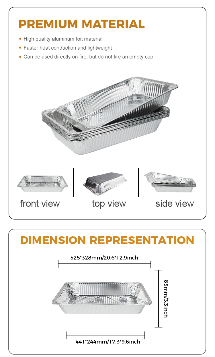 Fitur: Baking pan salaka foil sing paling gedhe iki digawe saka bahan foil aluminium aluminium kanthi 8011-0, sing bisa nyukupi standar kontak panganan, njamin panganan tanpa mambu tanpa mambu. Nduwe desain batin lan Convex, sing luwih aman digunakake. Peralatan kasebut bebas saka reresik lan nglindhungi kanthi becik peralatan. Apa baking utawa pemanasan babagan geni sing mbukak, ora perlu kuwatir babagan cacat wadhah utawa mengaruhi safety panganan.