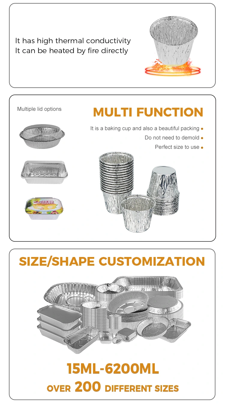 unchu aluminium foil supplier nganggo baking cake perak aluminium foil wadhah food grade bahan aluminium foil, thickened materi punika bocor-bukti lan compressive kanggo mesthekake stabilitas saka massa production.The konduksi panas malah lan cepet, shortening wektu baking lan nambah meal efficiency delivery.Integrated baking lan desain packaging nyuda demoulding lan piring loading langkah lan nyuda biaya pegawe lan macem-macem cilik ora kasedhiya kanggo produksi. deformed sak transportasi takeout, mbantu kanggo nambah reputasi merek.