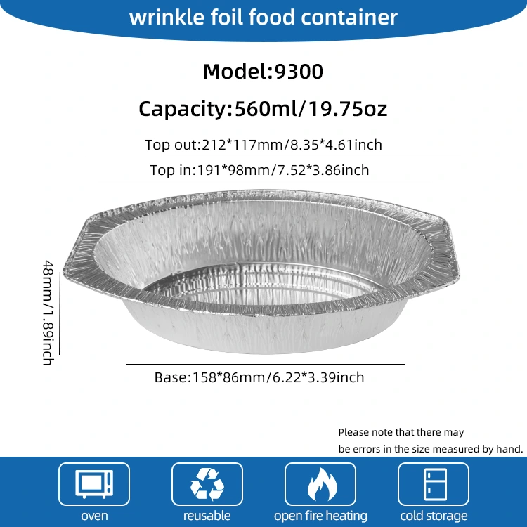 Foil aluminium foil oval baked roti aluminium, kontainer foil aluminium bisa digunakake langsung ing oven utawa panggangan, sing trep banget. Timbang mung 5,9 gram, gampang ditumpaki ruang nylametake kanthi rapi, kanthi efektif kanggo transportasi, plating lan pawon. Proses tembok lampu produk ndadekake permukaan lancar lan rapi, lan penampilan cerah salaka ora mung ayu lan elegan, nanging uga trep kanggo pasar lan sipert.