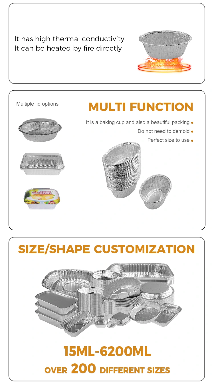 Foil Aluminium Kue Yunchu Silver Makas Makas Aluminium Foil Food Image Container lan Baking bisa uga bisa digunakake kanthi tahan roti, amarga material kandel bisa uga gampang dibuang, amarga materi sing kandel banget, amarga materi sing kuwat lan tahan lama lan teensile -20 ° C ~ 250 ° C, Pemanas kanthi merata, ora ana bau sing aneh, bisa digunakake kanthi geni sing mbukak, lan uga bisa digunakake kanthi geni sing dibakar, lan tuwung aluminium cilik bisa nambah poin. Ing sisih ngisor, ana tutup sing dipencet lan tetep ing sidebox, sing bisa nyegah panganan saka silek menyang sheet manggang, sing gampang dibebasake lan nggunakake.