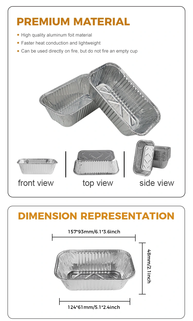 Hawa Penyambungan Aluminium Foil Yunhiru Fryer Grill Silver Kontaner Foil Aluminium cocog kanggo macem-macem kesempatan, baking, catering njupuk, pesta, lan lokasi layanan dhewe. Bisa digunakake kanggo nggawe barang panganan kayata roti kothak, cookie panggang, panggang, lan udhara, lan bisa digunakake karo macem-macem barang panganan. Kanthi kapasitas 450mL, wadhah iki bisa nahan barang-barang paling akeh lan dilengkapi tutup foil sing transparan kanthi efektif kanggo nyegah bledug lan rereged liyane ora mlebu. Tembok njaba lancar digawe gampang stack lan nyimpen, nyimpen ruang. Aman lan sehat kanggo digunakake, lan ramah lingkungan, lan materi kasebut bisa didaur ulang, supaya gampang digawa lan nggunakake maneh.