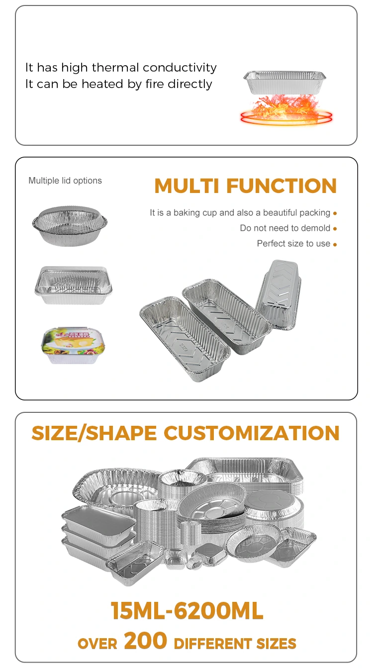 Wadhah iki ora mung tahan panas lan minyak, nanging uga gampang digunakake, kanthi cocog kanggo digunakake ing udara fryers lan peralatan liyane. Mung sijine panganan utawa sup nalika nggunakake tanpa kuwatir yen garing. Kanggo pangguna ing omah, luwih resik lan trep, kanthi desain ora ngumbah sing ndadekake ngresiki kanthi gampang lan cepet. BbQ persegi panjang perak nganggo wadhah aluminium perak minangka pembantu sing penting banget ing pawon sampeyan. Apa kanggo masak saben dinten utawa acara khusus, nawakake solusi sing sampurna. Teka lan toko kanggo nggawe urip masak luwih trep lan enak!