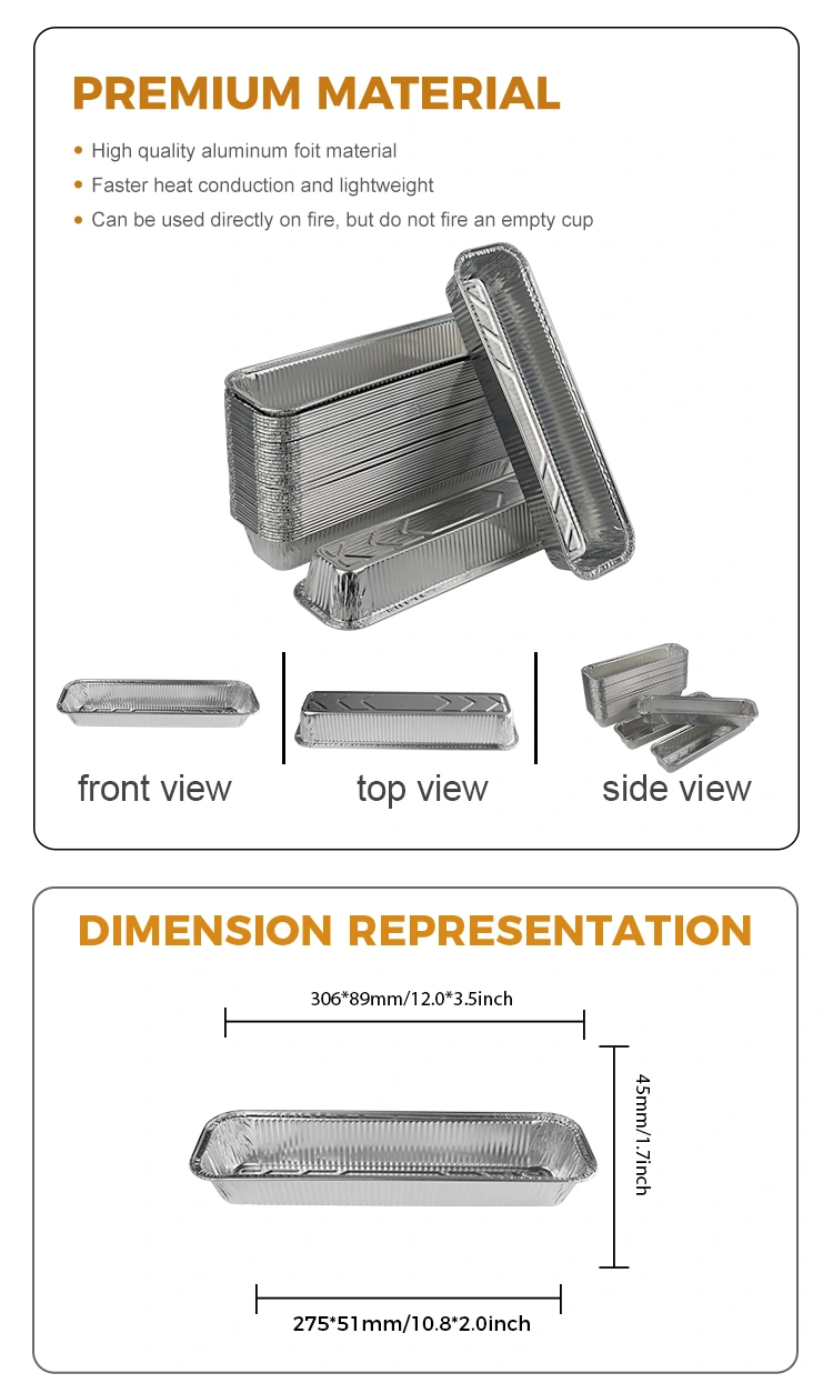 Kontaner roti rodok persagi panjang baking perak sing diwenehake dening supplier foil aluminium Yunchu digawe saka bahan kelas kelas lan cocog kanggo macem-macem skenario aplikasi. Produk iki cocog kanggo nggantos lan manggang, kayata roti utawa roti sing dawa. Apa kanggo panggang areng utawa minangka kothak pangiriman takeaway, pancen sampurna kanggo panggunaan.