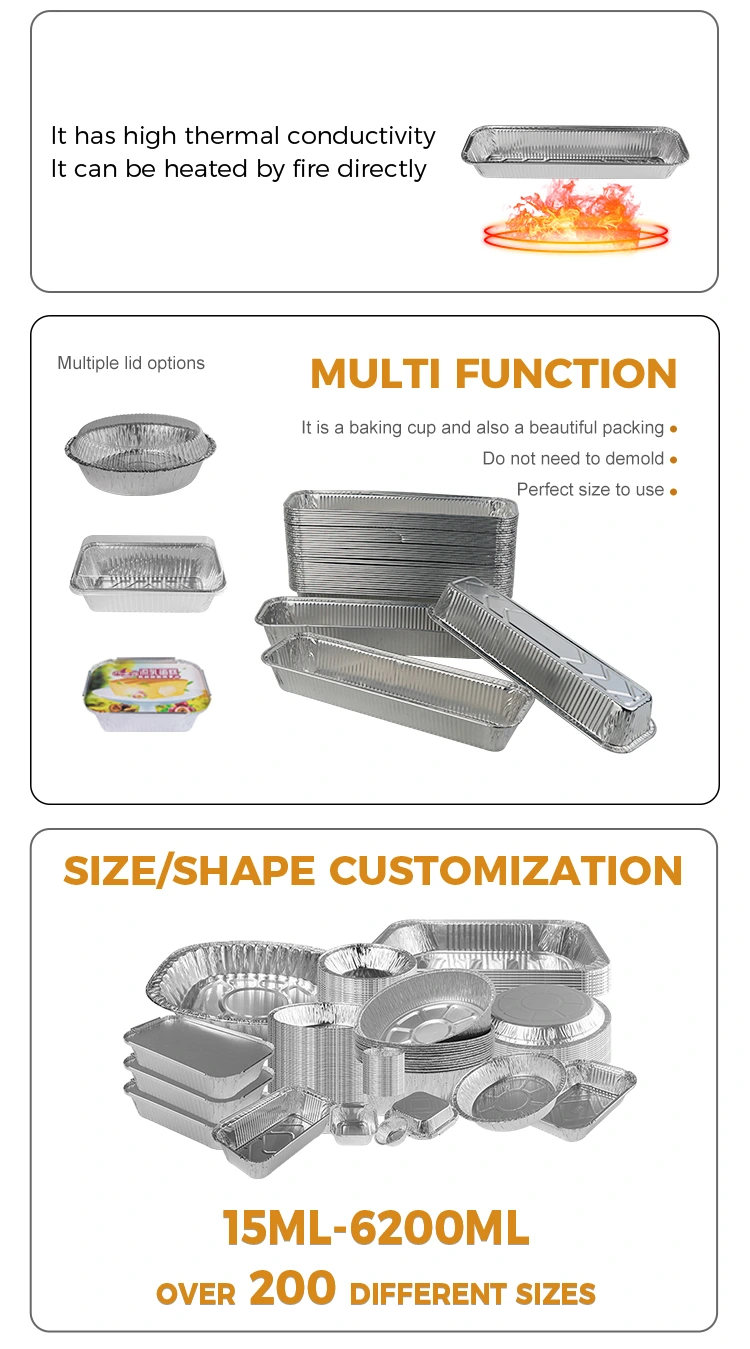 Pemasok aluminium aluminium yunumu segion wadhah baking perak, macem-macem cara sing bisa diangkat, desain terlindung, sing luwih dhuwur lan kondur, kondur pinggiran, sing luwih dhuwur lan kondur, baking ora gampang Scorch ing ngisor, panganan luwih apik, produk iki digunakake ing bidang barbecue lan manggang, utamane cocog kanggo kemah, bakery, rintihan barbecue, restoran tandelay lan sushi liyane. Iki dirancang kanggo nyukupi kabutuhan praktis saka umume kluwarga lan toko.