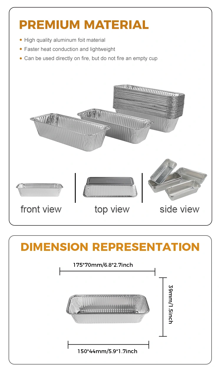 Wadhah Foil Roti Aluminium sing disedhiyakake saka persononer sing disedhiyakake dening supplier aluminium aluminium Yunuhu digawe saka bahan kelas kelas lan cocog kanggo macem-macem skenario aplikasi. Produk iki cocog kanggo nggantos lan manggang, kayata roti utawa roti sing dawa. Apa kanggo panggang areng utawa minangka kothak pangiriman takeaway, pancen sampurna kanggo panggunaan.